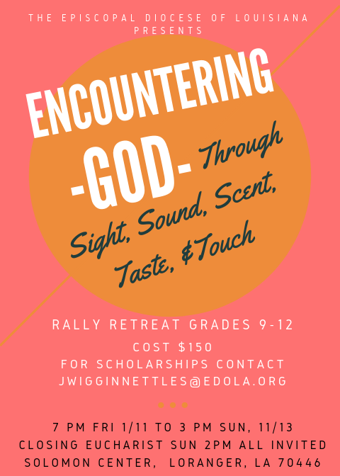 Senior High Rally is open to all youth in 9th, 10th, 11th and 12th grade in the Episcopal Diocese of Louisiana and friends from any religious backgrounds. This is a Christian retreat that is open and welcoming to all.